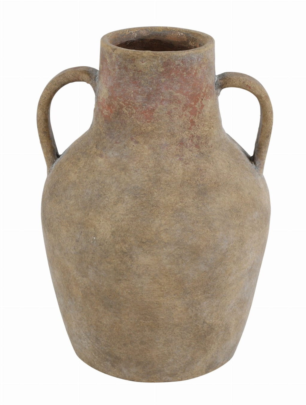 Charakterystyczne dwa uchwyty po bokach nadają mu subtelnie klasyczny, lekko śródziemnomorski wygląd, jednocześnie podkreślając jego dekoracyjny charakter. Wazon świetnie prezentuje się zarówno jako samodzielna ozdoba, jak i w połączeniu z suszonymi trawami, gałęziami czy kompozycjami sezonowymi.