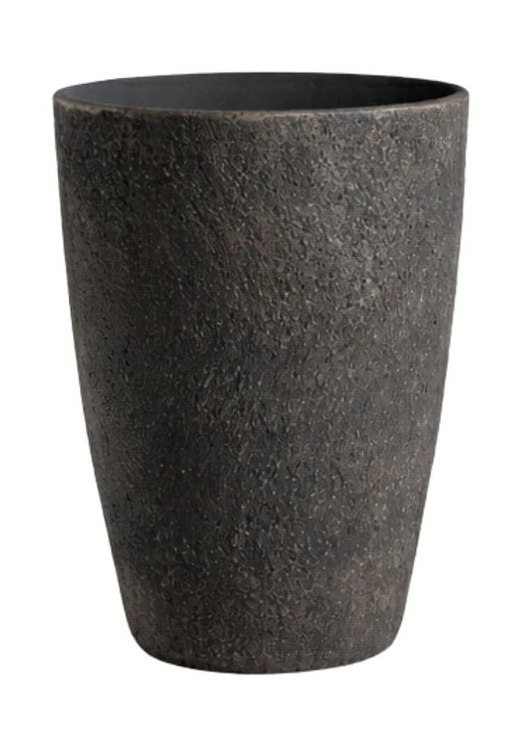 Solidna donica wykonana z betonu o naturalnej, lekko chropowatej powierzchni. Ciemny, brązowy kolor w połączeniu z prostą formą tworzy elegancki i uniwersalny element dekoracyjny.