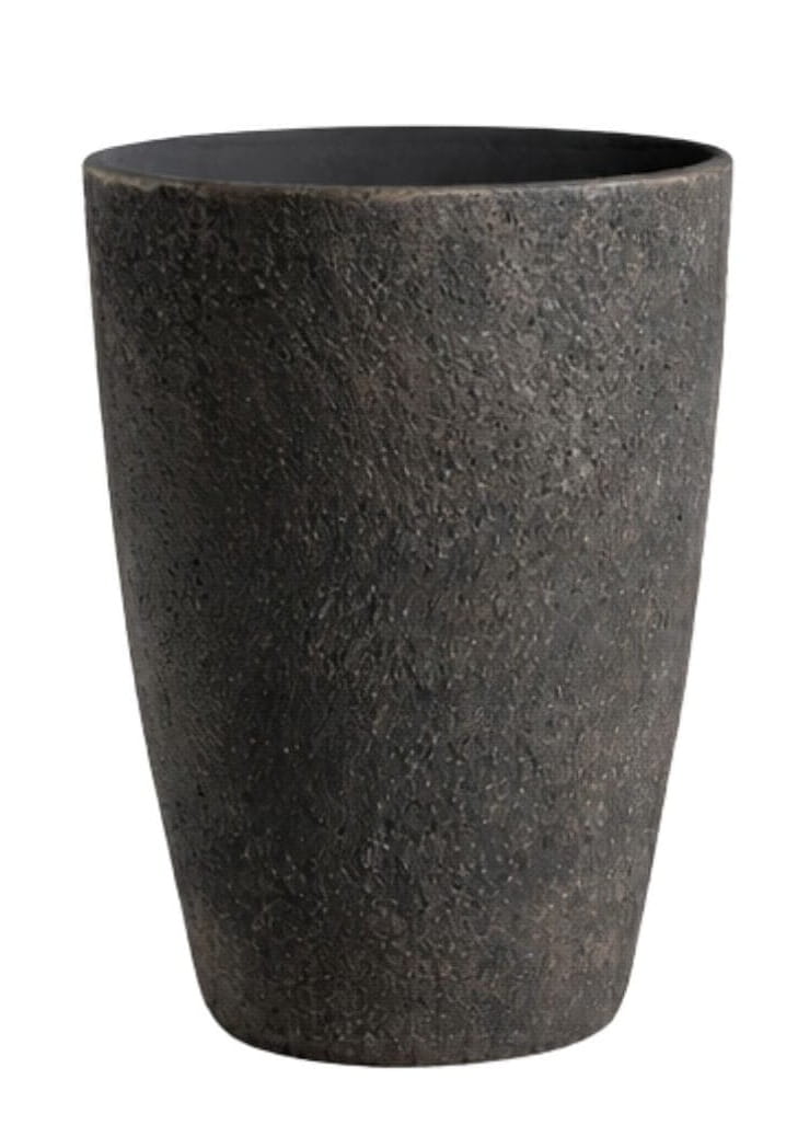 Największy wariant donicy wykonanej z betonu o charakterystycznej, surowej strukturze. Ciemny, brązowy odcień nadaje jej lekkości, mimo solidnej i masywnej formy.