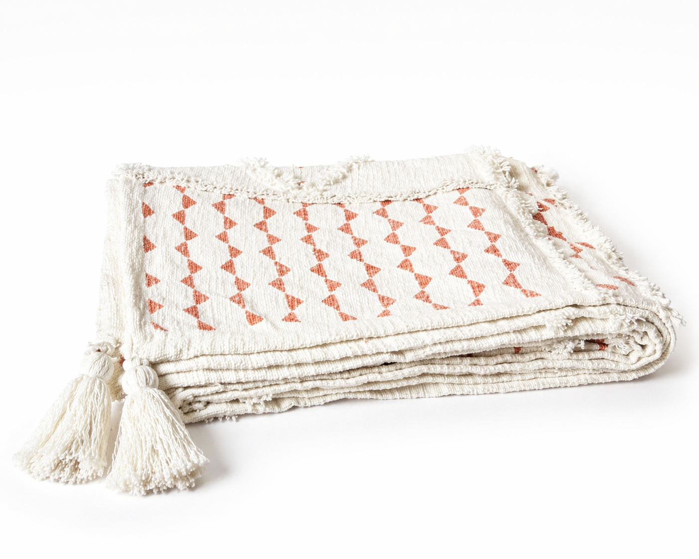 Koc wykonany jest z bawełny, dzięki czemu jest miękki, przyjemny w dotyku i komfortowy w użytkowaniu. Jasna kolorystyka w połączeniu z subtelnym, geometrycznym wzorem nadaje mu lekkości i dekoracyjnego charakteru. Frędzle na zakończeniach podkreślają styl boho i dodają całości naturalnego, swobodnego wykończenia.
