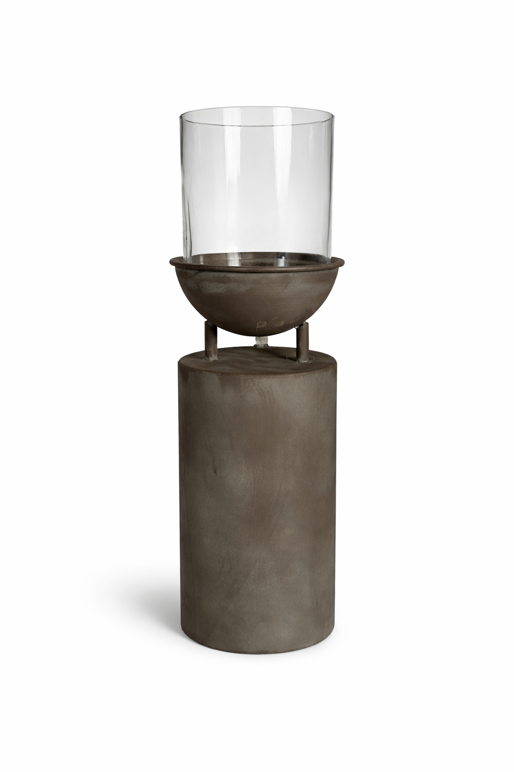 Stylowy świecznik metalowy z wazonem szklanym to elegancki element dekoracyjny, który doskonale podkreśla klimat wnętrza. Prosta, cylindryczna podstawa w szarym kolorze oraz transparentny szklany wazon tworzą nowoczesną i ponadczasową formę, która świetnie pasuje do aranżacji w stylu loftowym, nowoczesnym, industrialnym oraz minimalistycznym.