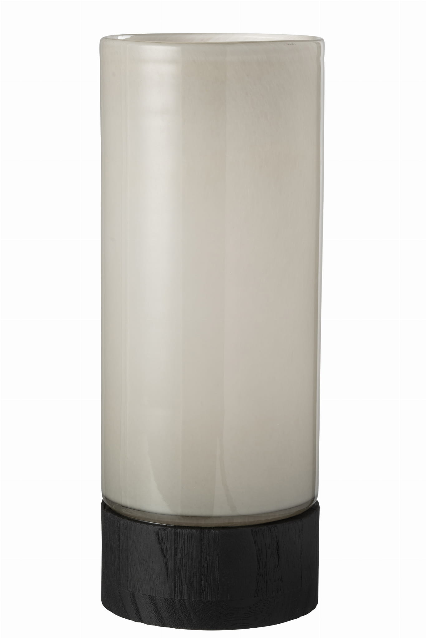 Lampion szklany szary z drewnianą podstawą 36cm
