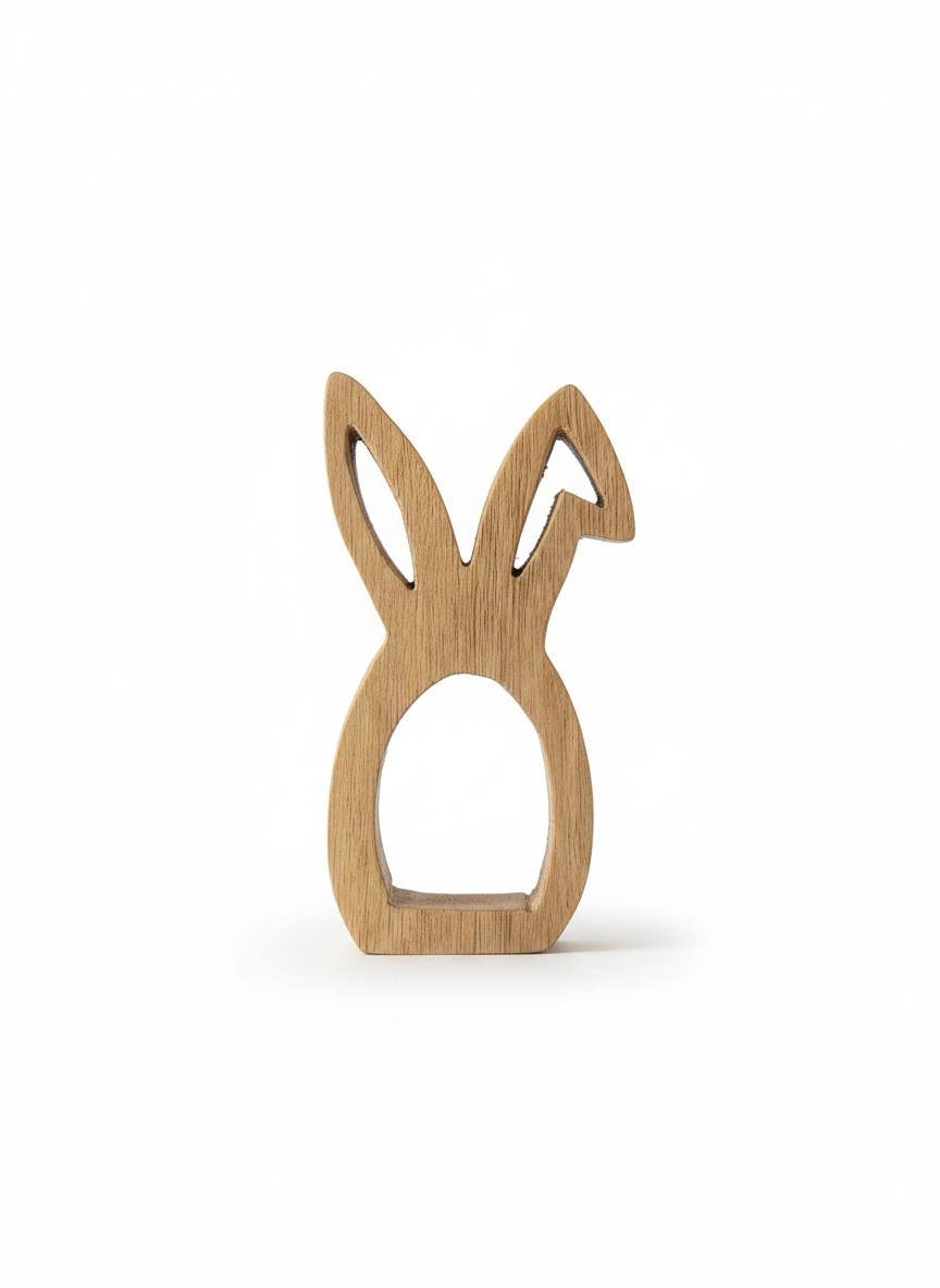 Obrączka do serwetek w kształcie zająca to stylowy dodatek, który doskonale uzupełni wielkanocne nakrycie stołu. Jej prosta, a zarazem dekoracyjna forma sprawia, że serwetka prezentuje się elegancko i estetycznie, podkreślając świąteczny charakter aranżacji.