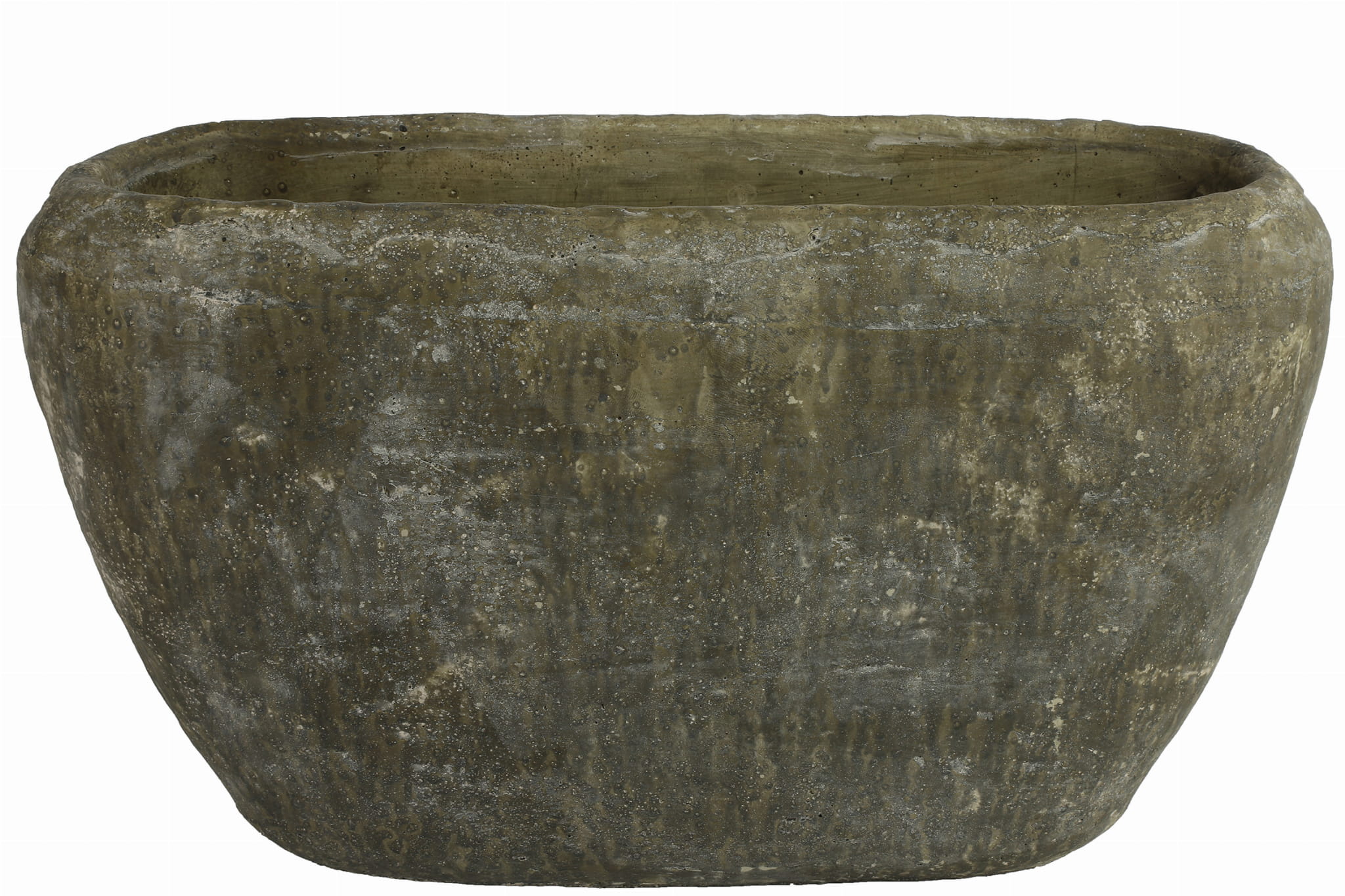 Osłonka wykonana z betonu wyróżnia się surową strukturą oraz postarzanym wykończeniem w stonowanym, zielonym odcieniu. Nieregularna, lekko porowata powierzchnia nadaje jej autentyczny charakter inspirowany naturą, dzięki czemu doskonale wpisuje się w aranżacje rustykalne, loftowe oraz organiczne.