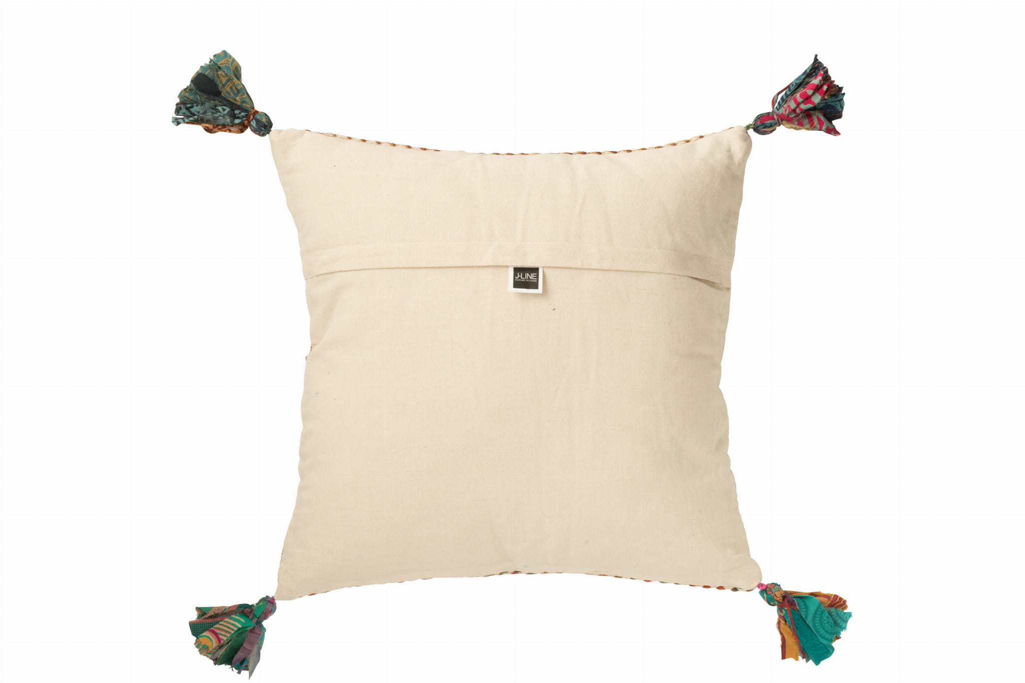 Wyjątkowa poduszka dekoracyjna wykonana z bawełny, wyróżniająca się bogatym, wielobarwnym wzorem i różnorodnymi fakturami. Połączenie splotów, przeszyć oraz dekoracyjnych detali nadaje jej niepowtarzalnego charakteru i rękodzielniczego wyglądu.