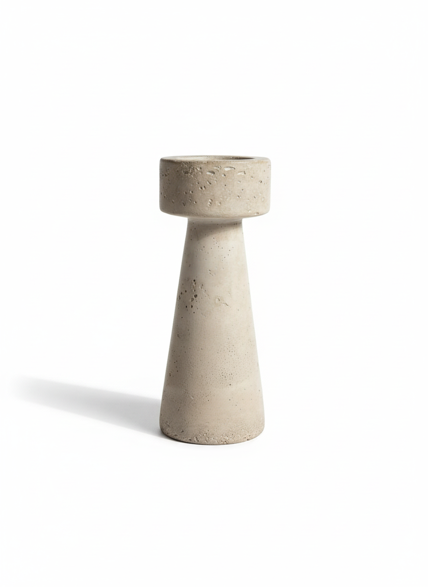 Dekoracyjny świecznik betonowy o wysokości 25 cm to stylowy dodatek do wnętrz inspirowany naturalnymi materiałami i prostotą formy. Delikatna, matowa struktura betonu w beżowym odcieniu nadaje mu subtelnego charakteru, dzięki czemu doskonale wpisuje się w spokojne, stonowane aranżacje.