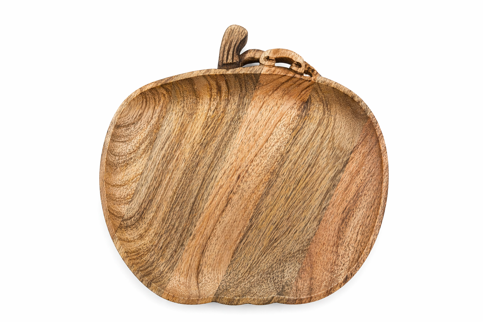 Taca wykonana jest z naturalnego drewna mango, które wyróżnia się pięknym, unikalnym usłojeniem i ciepłą kolorystyką. Każdy egzemplarz ma niepowtarzalny wygląd, co podkreśla jego naturalny i dekoracyjny charakter. Dodatkowym atutem jest oryginalny kształt jabłka z subtelnym uchwytem, który nadaje tacy wyjątkowego stylu i wyróżnia ją na tle klasycznych modeli.