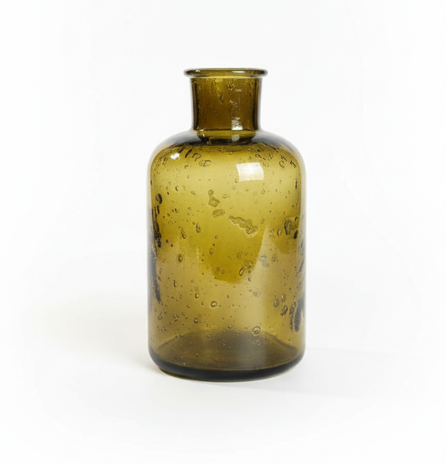 Szklany wazon w oliwkowo zielonym odcieniu o wysokości 19cm to elegancki dodatek, który wprowadzi do wnętrza subtelny akcent kolorystyczny. Delikatnie transparentne szkło z widocznymi pęcherzykami powietrza nadaje mu dekoracyjnego charakteru i sprawia, że pięknie prezentuje się zarówno z kwiatami, jak i jako samodzielna ozdoba.