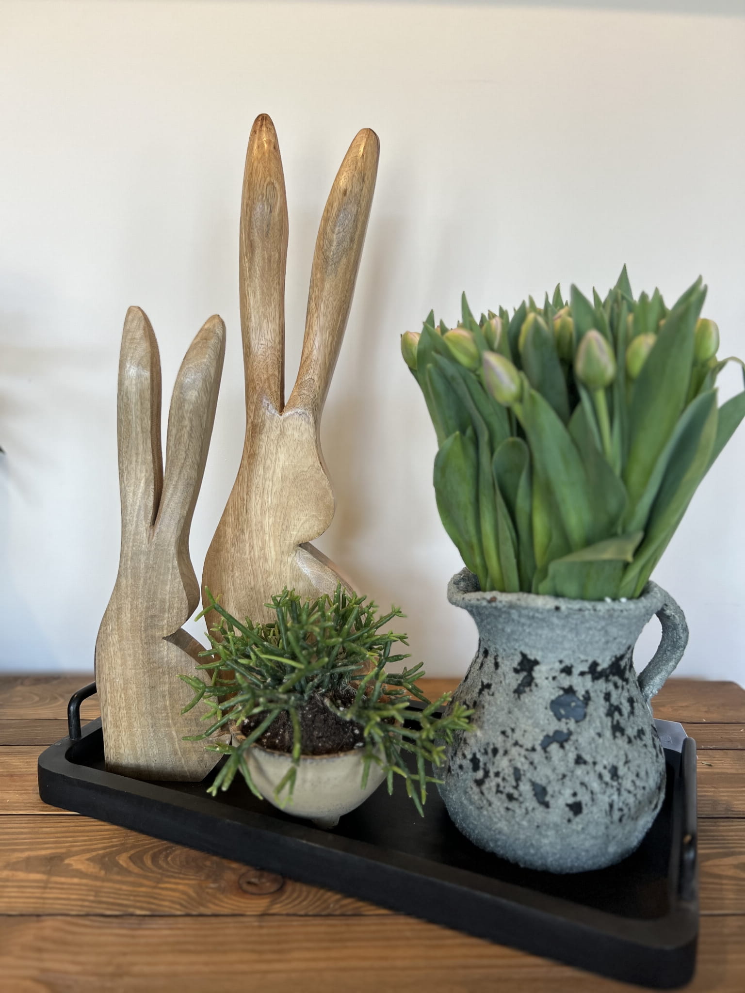 Dzięki solidnemu wykonaniu i ponadczasowemu stylowi, figurka zająca będzie piękną dekoracją nie tylko na Wielkanoc, ale przez całą wiosnę. Połącz różne rozmiary, aby stworzyć harmonijną kompozycję i nadać wnętrzu wyjątkowy klimat.